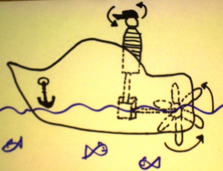Later in life, the child will learn his/her favorite toy as a child was based upon the Hooke's Law principle. As they twisted the captain, they continually displaced the spring, creating potential energy. When they released Capt. Chuck, the potential energy would be converted to kinetic energy, causing the boat to move.