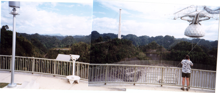 The nerd highlight of my trip to Puerto Rico was visiting the world's largest radio telescope dish, at Arecibo Observatory, technically the National Astronomy and Ionosphere Center, run by Cornell for NSF. They took a whole valley, rounded it out a bit, and covered it in aluminum mesh.