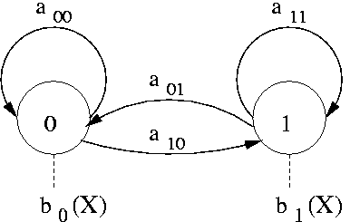 In an ideal case we know the "meaning" of states in a HMM. In speech recognition the most popular HMM-topologie is the 3-state left-to-right model. It is used to model phonemes. Usual the states are named like Begin, Middle and End. The idea here is that the glide into the phoneme sounds different than the phoneme itself or the transition out of the phoneme. In addition the number of states impose a minimum duration (depending of the topologie). Because we use demi-sylables, which in average consist of more than one phoneme, we use more states for the finals. If we assume that a final e.g. consit of 2 phonems we would model them in a system with phoneme units with 6 states compared to 4 states in this approach. To choose the right topology is an important step, often the less constraining models perform better, because wrong assumtions about constraints hurt often more than a less precise model.