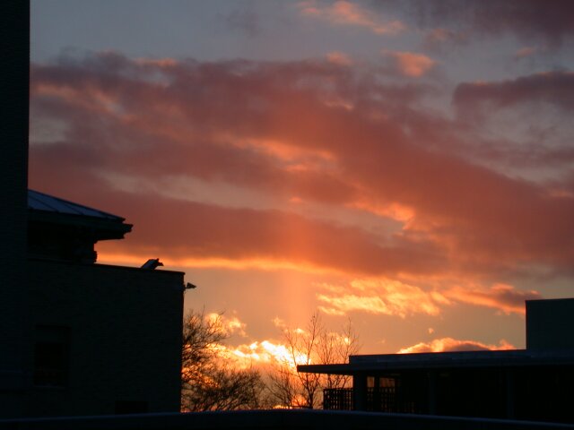 2005/2/25 日落时的日柱. 颜色随太阳落下而改变. Canon EOS 300D相机, 55mm和170mm镜头. 摄于匹兹堡. 气温0度左右.