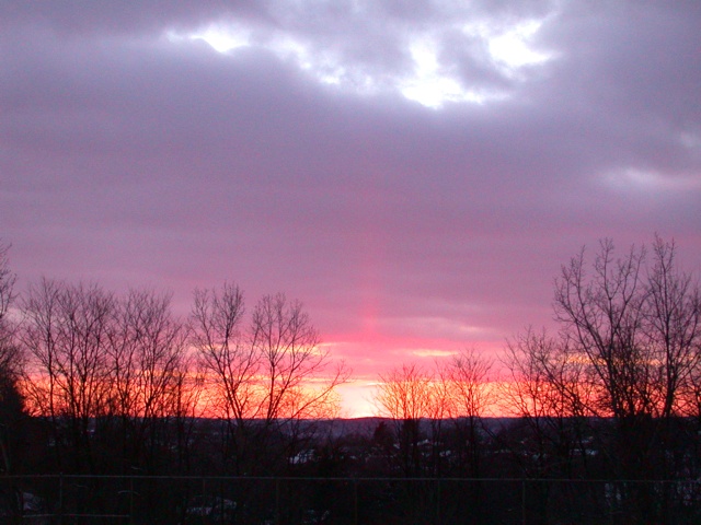 2003/1/17 17:09. 落日上方日柱. 当时气温零下10度. 摄于匹兹堡.