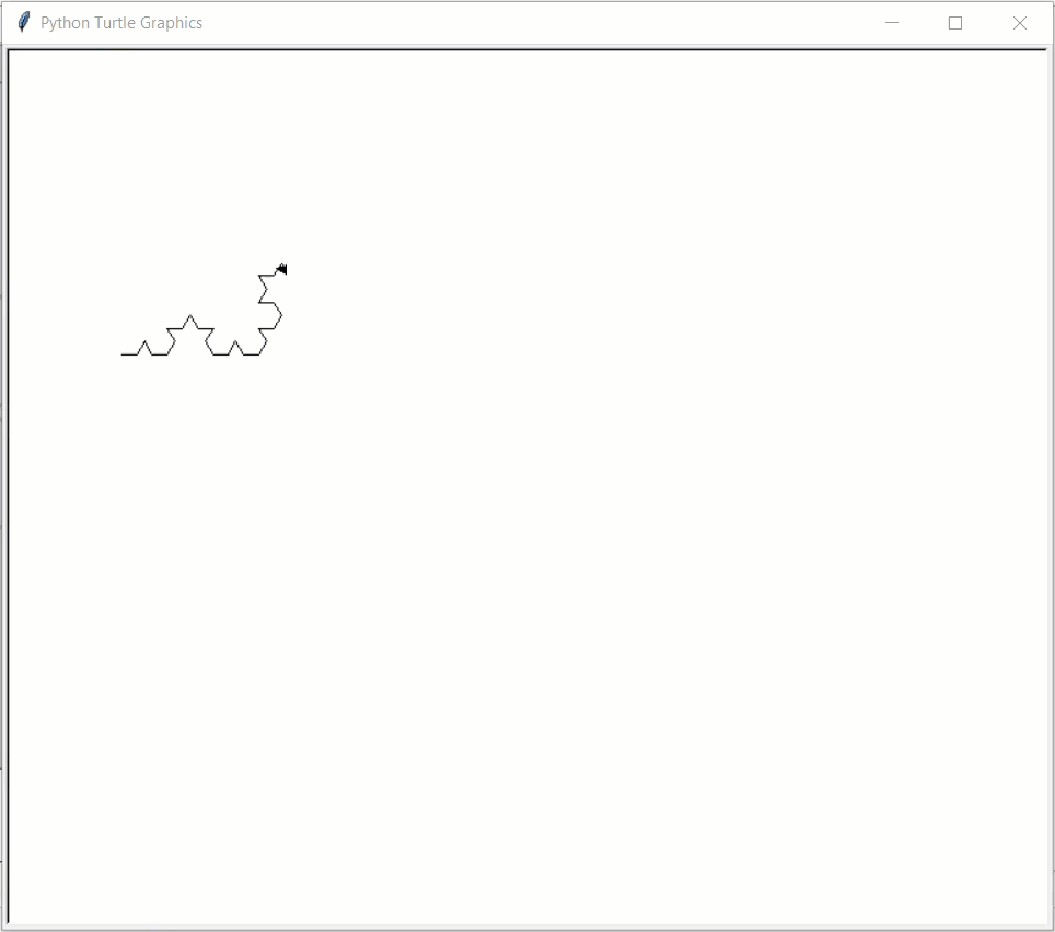 The Koch curve is a fractal that replaces a line segment with 4 connected line segments that are all 1/3 of the size of the original line.