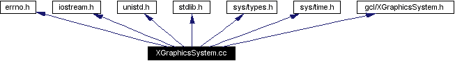 #include "gcl/XGraphicsSystem.h"#include <sys/time.h>#include <sys/types.h>#include <stdlib.h>#include <unistd.h>#include <iostream.h>#include <errno.h>Include dependency graph for XGraphicsSystem.cc: