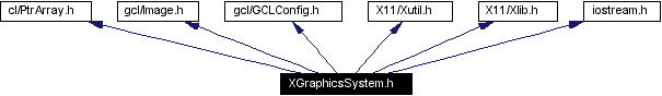 #include <iostream.h>#include <X11/Xlib.h>#include <X11/Xutil.h>#include "gcl/GCLConfig.h"#include "gcl/Image.h"#include "cl/PtrArray.h"Include dependency graph for XGraphicsSystem.h: