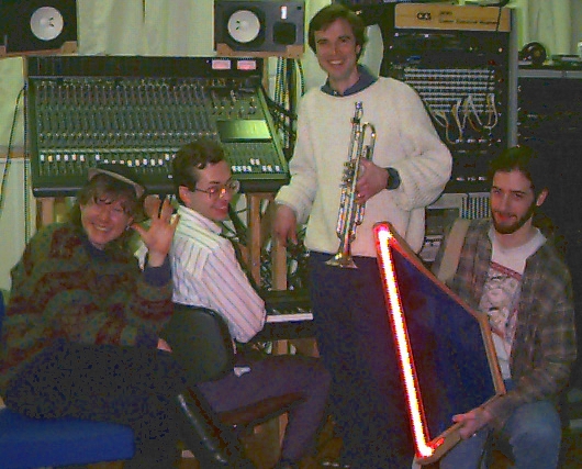 General Information about the Computer Music ProjectThe Computer Music Project conducts research in the areas of real-time control, acoustic signal processing, music synthesis, music understanding, and performance. In all of these areas, our work is focused on issues of representation. This project, in existence since 1983, is part of the Carnegie Mellon University School of Computer Science. Belinda, Lorin, Roger, Eli, around 1998 in the Music Lab Real-time Control has been the subject of much of our work. The CMU MIDI Toolkit was developed here, and served as the platform for pioneering work in computer accompaniment and interactive music systems. Current work is on a system named Aura, which extends the toolkit to support a mix of time-critical music control processing, audio synthesis with low latency hard real-time deadlines, and ``soft'' processing of tasks such as interactive graphics or high-level AI related search tasks. The primary platform for this development work has been Windows-NT, but we are generally moving to Linux, which now offers better real-time performance. Another real-time development is the Serpent language, which is modeled after Python, but includes a sub-millisecond latency real-time garbage collector and allows multiple instances to run in one address space, allowing true concurrency with preemptive scheduling. Serpent is the "scripting language" for Aura applications. Work on Signal Processing and Music Synthesis is proceeding along several parallel paths. First, there is research in language design. The very high-level language Nyquist allows composers to compute and manipulate signals using a functional programming style. Nyquist integrates the representation of discrete events such as notes with continuous audio. A spinoff of the Nyquist work is a study of efficient synthesis by software, considering such things as cache effects, buffer sizes, and the organization of inner loops. As a result of this work, Nyquist was by far the fastest synthesis language in a comparison of several popular synthesis packages on standard benchmarks. More recently, we have started an effort to visualize and edit musical information, starting with an extensible audio and event editor, Audacity. Audacity accepts plug-ins, is integrated with Nyquist, and provides a simple way to construct new editing operations for signals and discrete events such as MIDI data. Audacity has taken on a life of its own as one of the most popular audio editors. Finally, we are investigating a synthesis technique developed at Carnegie Mellon called spectral interpolation synthesis, which models the natural spectral evolution of wind instruments. The synthesis algorithm is computationally efficient and lends itself to "synthesis by rule" of sounds for which there is no original model to copy. Our trumpet synthesis is unsurpassed. Music Understanding is the task of identifying pattern and structure in music. For example, using a combination of techniques borrowed from the fields of signal processing, discrete algorithms, artificial intelligence, and real-time control, we have built systems that reliably ``listen'' to live performers by following written scores and synchronizing pre-determined accompaniments to real-time MIDI input. These systems are robust in that they can speed up or slow down with the performer as well as tolerate a large number of mistakes! The basic technology of the SmartMusic system by Coda Music Technology was developed here and is licensed by CMU to Coda. We have worked on many varients of the score-based performance following task: Considerable effort has also been spent mapping improvised performance to higher level notions of structure. This is an entirely different problem because there is no score to follow. Assuming the computer is a semi-autonomous extension of the improviser's intent, it must remain tightly coupled to the performer's nuance, all the while providing robust, useful, and interesting additions to the performance. Success requires programs that react in non-linear yet consistent and interesting ways; progress in the music domain is therefore congruent with HCI and iteractive-media research. It also requires formalization and/or learning of meaning in improvisation. We are experimenting with AI techniques (rule based, symbolic, numeric) and real-time systems in the following applications: Most recently, we have collaborated with researchers at the University of Michigan on a large project, MUSART, related to Music Search and Retrieval. While many researchers have looked at this as a melodic pattern matching and search problem, we are taking a much broader view. We believe that style is important for music perception and classification. We are investigating how to characterize style and use it for music search and retrieval. This raises problems of audio analysis, symbolic analysis, motive and phrase identification, machine learning, indexing, representation, and even music composition and synthesis. An important outgrowth of this work is a set of new techniques for Music Structure Analysis, in which music signals (audio) is analyzed automatically to determine form and structure, e.g. AABA. In addition, we have developed techniques for aligning audio to symbolic data such as scores and MIDI data. This is essentially a "poor man's music transcription system": given a score and corresponding audio, we can map from symbols (beats, bars, rehearsal numbers, etc.) directly to the audio. Finally, and perhaps most importantly, the Computer Music Project supports Music Synthesis and Performance, and much of our research is used by visiting composers. For example, the CMU MIDI Toolkit has been used to realize many compositions, Nyquist has been used to synthesize several works, and our recording facilities are used regularly for music production. An excellent integration of all of these efforts is seen in Roger Dannenberg's interactive computer music pieces. These co