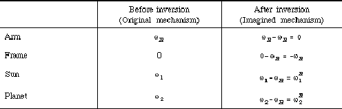 Table 7-3 Inversion of planetary gear trains. Note: H is the rotary