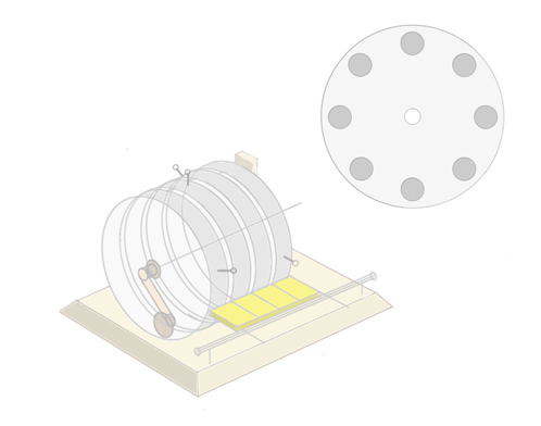 This toy concept is based on magnetic repulsion and attraction. On the inside face of each disc is a distinct spatial arrangement/ratio of magnets, so that each disc produces a different rate of rotation. The main disc is operated by a hand crank, which induces the rotation of each successive disc. Located on the circumference of each disc is a mallet that hits a corresponding tone-producing key upon each complete rotation. These keys can be interchanged to produce different melodies or sounds.