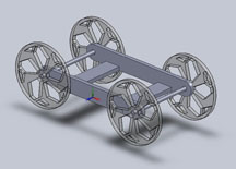 We created the wheels from 0.1 inch plexi glass on the laser cutter. We had originally wanted the wheels to be .25 inches thick. However, the laser cutter was not powerful enough to cut through this thickness. Therefore, we cut two pieces of plexi for each wheel and glued them together. The design was based on the Lamborghini Reventon rims. The process to produce the part involved first designing the wheel in Solidworks to virtually assemble it before production. Then the lines from drawings were exported to autocad as a .dxf file. Lines for cutting were made red and set to hairline width, to avoid burning the plexi glass. The kerf (width) of the beam was not a factor but in more precise work, we would have to set the laser to cut on the inside or outside of the line. We had to set the laser power and speed to specific levels to avoid burning the machine, which is the primary danger for this way of fabrication.