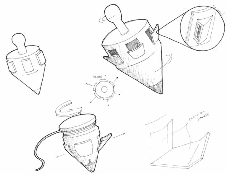 The SpiraSpinner would be simply be spun by the child. As the t oy spins, flaps on the periphery of the toy would swing open on a hinge and would expose colored panels hidden beneath them. as the SpiraSpinner spins the colors mix visually and magically turn white, parking the childs interest. The toy itself is based on the principle of centripetal force. The top would only have rounded edges, including the point on which it spins for safety.