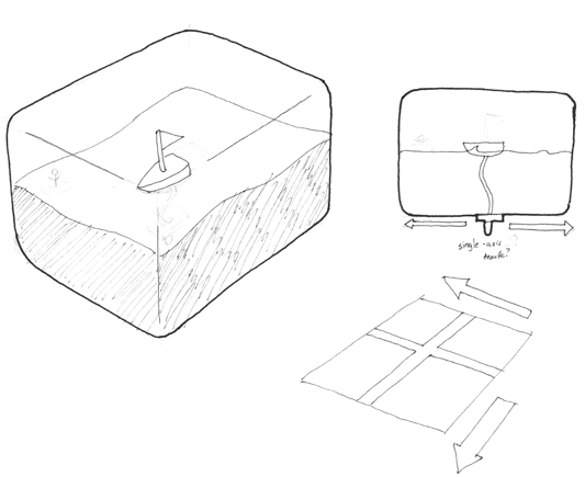 The Sea Rescue Game is based upon the principles of buoyancy and magnetism. Children would use the small knob on the bottom of the container to move a small boat, attached by string, floating in the liquid contained inside. This would allow the boat to move within the space of the Game. Small figurines would also be floating inside the container. These objects would be slightly magnetized and would be able to be "saved" by the floating vessel. The liquid inside of the container would be water as opposed to any other liquid to ensure safety if the toy happens to break. The vessel would be made of plastic to enhance durability and resist impacts from falling damage, and would have rounded edges.