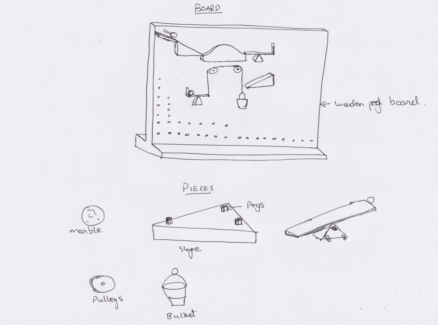 - The kit comes with many simple machines (see-saws, pulleys, trap-doors) that can be pegged onto the board to create a path for the marble to roll down