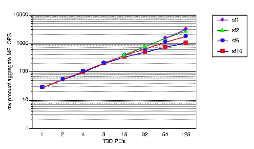 Figure 16. Scaling with respect to MV-product MFLOPS. (GIF) (postscript)