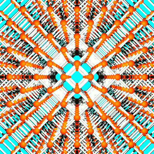 This shows two effects. The first is the effect of increased velocity from the same position in front of the square lattice. Note how the square lattice approaches a spherical shape near the speed of light. The prediction as one gets vanishingly near the speed of light is that the entire universe collapses into a singularity in front of you...so it's not surprising that it gets round first. The second effect of increased velocity from the same position in front of the lattice is that of light frequency doppler shifting based on the fact that parts of the lattice are further away. This accounts for the color changes. There is a final snapshot in this animation of a view much closer to the lattice.