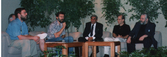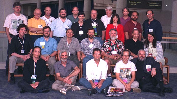 ![]() NYIT Computer Graphics Lab Reunion SIGGRAPH '98 in Orlando FL, July 1998 Standing, left to right: John Lewis, Geoff Gardner, Hank Grebe, Andrew Glassner, Kevin Hunter, David Sturman, Tom Duff, Robert McDermott, Darcy Gerbarg, Sterling Stites, Steve DiPaola, Ralph Guggenheim Seated: Ned Greene, Paul Heckbert, Patrick Hanrahan, Ed Catmull, Alvy Ray Smith, Lance Williams, Christine Barton Seated on floor: Susan Van Baerle, Jules Bloomenthal, Tom Brigham, Michael Chou, David Geshwind Photo by Mike Chou. ![]() Group Photo, NYIT Computer Graphics Lab, on lawn outside Gerry House, 1985 Standing, left to right: Al Arthur, Bruce Perens, Annette Zacharia, Bruce Doll, Terri Doll, Rex Grignon, Glenn McQueen, Cam Macmillan, Ken Wesley, Robert Thornton, Mike Chai, John Schlag, Greg Glass, Eddie Langone, John Tillman, Rick Ace, John Lewis, Tom Shermer. Squatting/kneeling/sitting/lying: Ned Greene, Duane Palyka, Haresh Lalvani, Sue Sparks, Howard Spielman, Margaret Twomey, Lance Williams, Mary Mazarella, Frank D'Aprile, Amber Denker, Paul Heckbert, Francis Glebas, Joan LaPallo, Steve DiPaola, Michael O'Rourke, Lynn Klein, Pat Hanrahan. Photo scanned by John Schlag. |