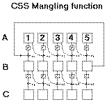 An anonymous author contributed a CSS descrambler in pure lambda calculus, where even integers are represented as functions. Is this "code"? Or is it pure mathematics? The same author also produced a descrambler written in Brainfuck, a Turing machine-like language with only eight operators. A truly minimalist description of the algorithm. |