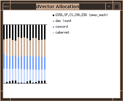 The following figure shows the allocation of pieces of a dVector during runtime over 4 machines.