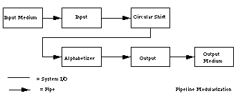 input, shift, alphabetize, and output. Each filter processes its data, sending