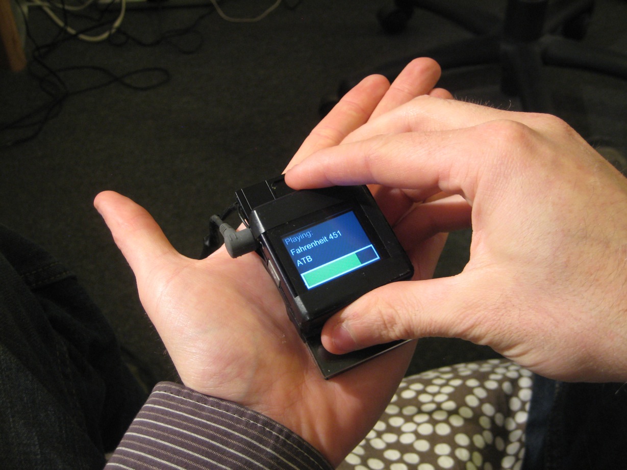 For their prototype, Harrison and Hudson mounted two optical sensors on the back of a wristwatch-size television with a 1.5-inch-diagonal display. Computer processing is performed off-board by a laptop computer. But Harrison said the Minput sensors and processors could be readily miniaturized to fit inside small mobile devices.