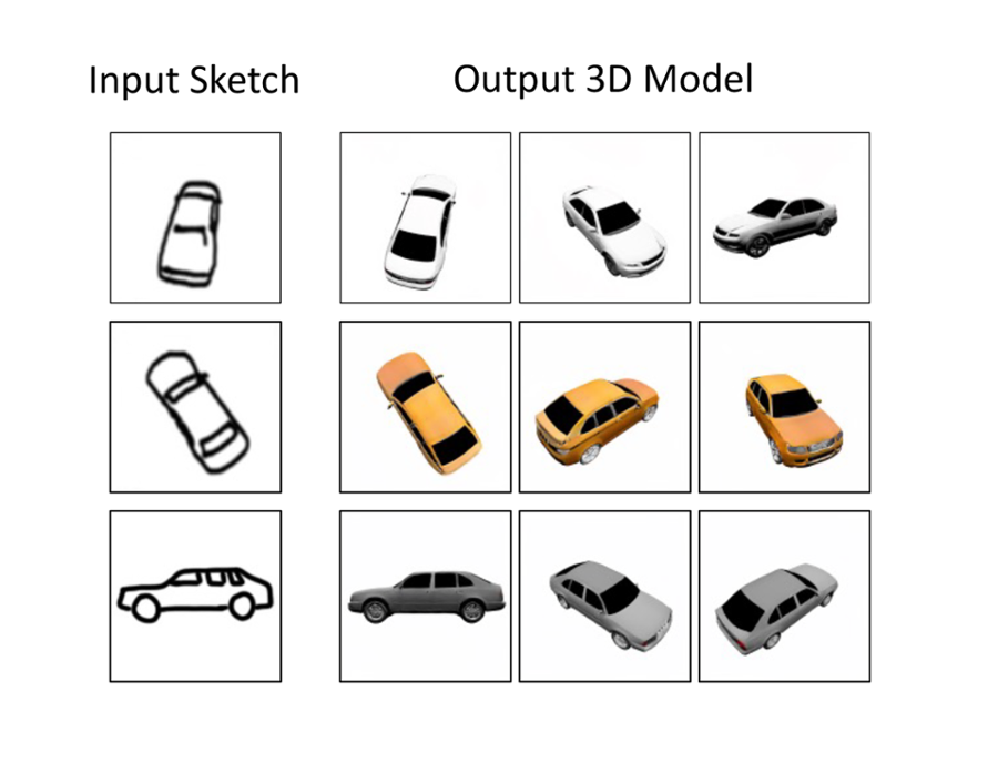 Its interactive editing feature sets pix2pix3d apart from other modeling tools since users can make adjustments quickly and efficiently. This capability could be especially helpful in fields like manufacturing because users can easily design, test and adjust a product. For example, if a designer inputs a sketch of a car with a square hood, the model will provide a 3D rendering of such a car. If the designer erases that part of the sketch and replaces the square hood with a round one, the 3D model immediately updates. The team plans to continue refining and improving this feature in the future.
