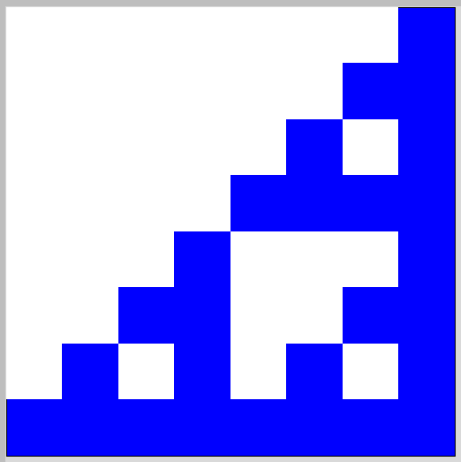 Starting with a blue filled-in square, this Sierpinski's Triangle can be produced with the following procedure: