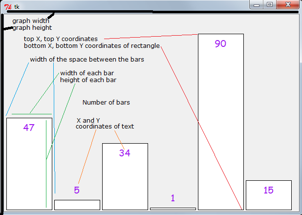 >>> sampleList2= [47, 22, 34, 95] >>> bargraph(sampleList2, 600, 400)