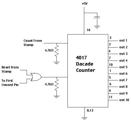 Multiplexing Stamp outputs with a 4017 Decade Counter