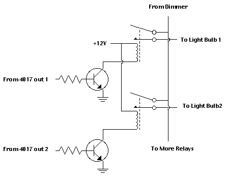 The 4017 decade counter provides a logic level output. This can be used in a number of ways.