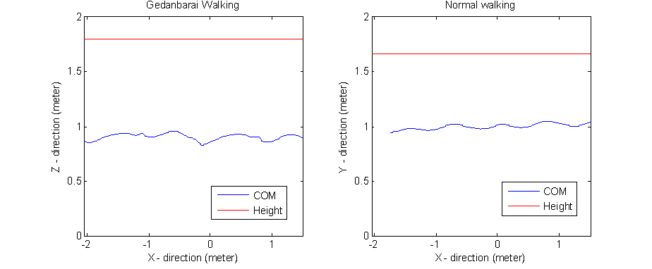 Figure 5: Comparison of the height of center of mass for Gedanbarai and normal walking