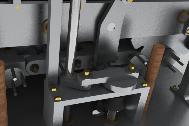 I've gotten a good start on the construction. All of the major structure is done. The middle mechanism (the placer) and most of the final mechanism (the hammerer) are complete