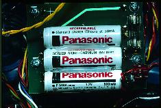 Battery board holds seven batteries (three on top side.)