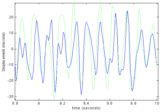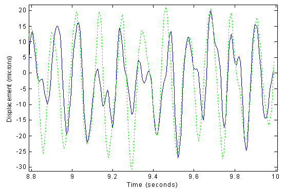 In the tests involving only axial motion, the average erroneous motion amplitude was reduced from 51 mm p-p to 25 mm p-p, a reduction of 51%. Sample results from the 1-D tests are shown in Fig. 2.