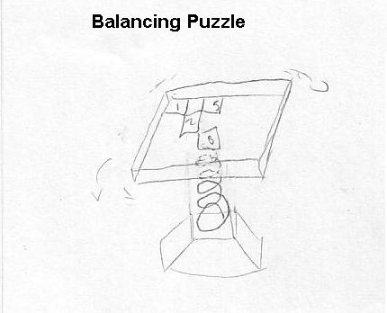 The user places numbered blocks on the inside of the box to add up to the number designated on the surface of each square while keeping the box from tipping over. The spring has a constant to a degree such that it can withstand up to a certain amount of unbalanced force before the box leans too far and the blocks fall out. The blocks vary in weight according to the number printed on them.