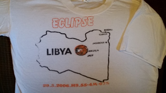 We bought this nifty eclipse t-shirt at the pop-up tent city where we saw the eclipse (about halfway between Tobruk and Jaghboub).