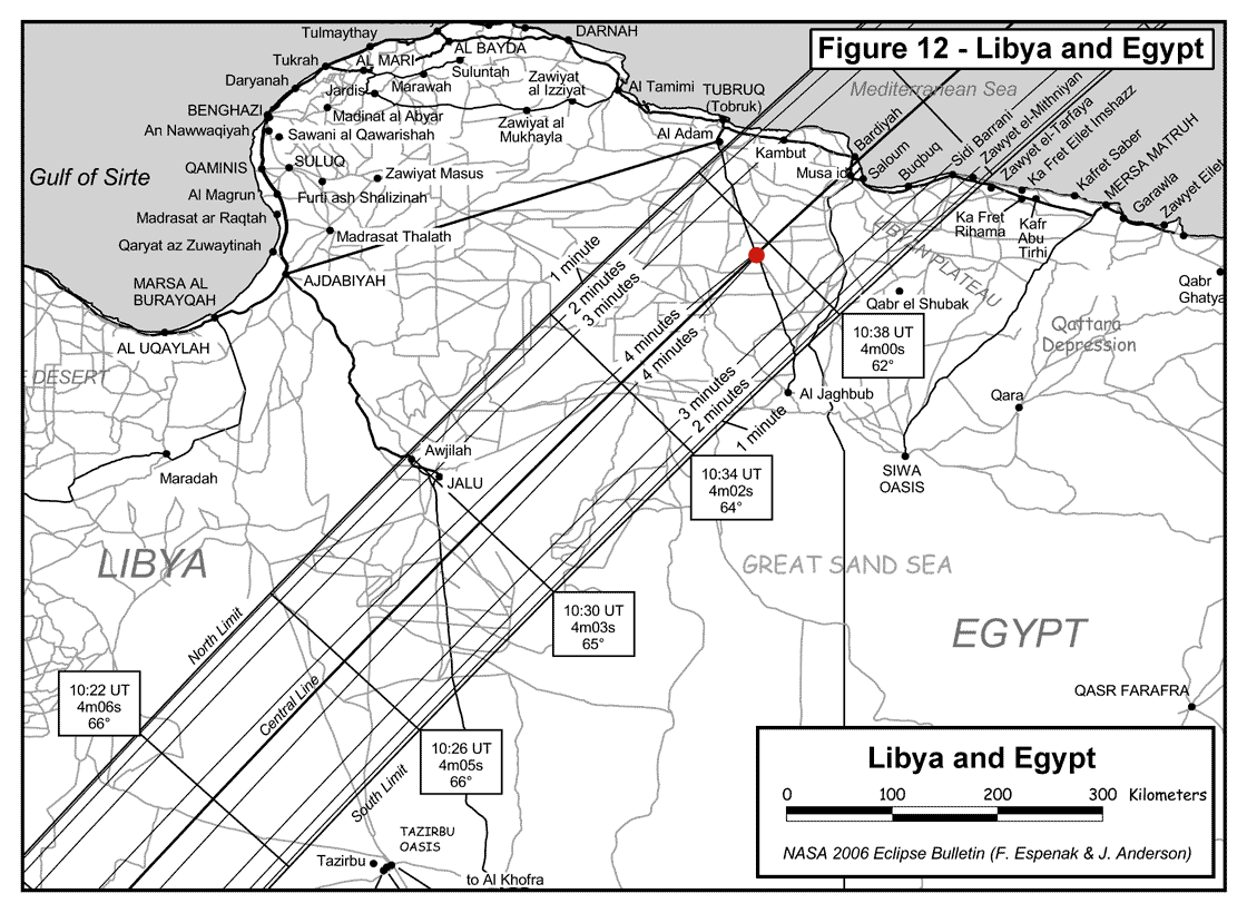 the eclipse (30.940N, 24.241E), and Google Maps