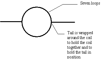 - Starting about 3 inches from the end of the wire, wrap it 7 times around the toilet paper tube. Remove the tube (you don't need it any more). Cut the wire, leaving a 3 inch tail opposite the original starting point. Wrap the two tails around the coi